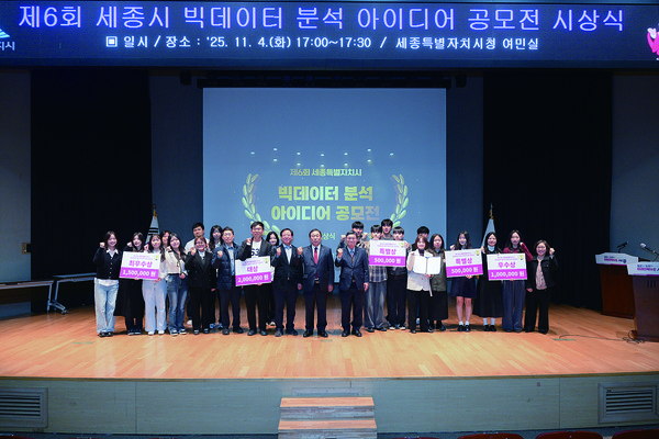 창의성, 우수성, 효과성, 실현·확장 가능성 등을 기준으로 공정하게 심사한 결과 ‘세종시 상가 데이터 분석을 통한 추천 지수(SRS) 기반 상권 활성화 전략 제안’ 아이디어를 제안한 원민재 씨가 대상의 영예를 안았다.