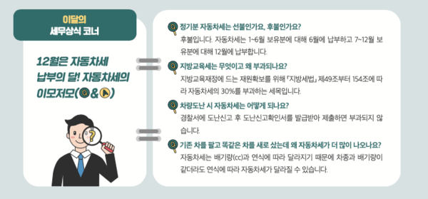 A. 자동차세는 배기량(cc)과 연식에 따라 달라지기 떄문에 차종과 배기량이 같더라도 연식에 따라 자동차세가 달라질 수 있습니다.